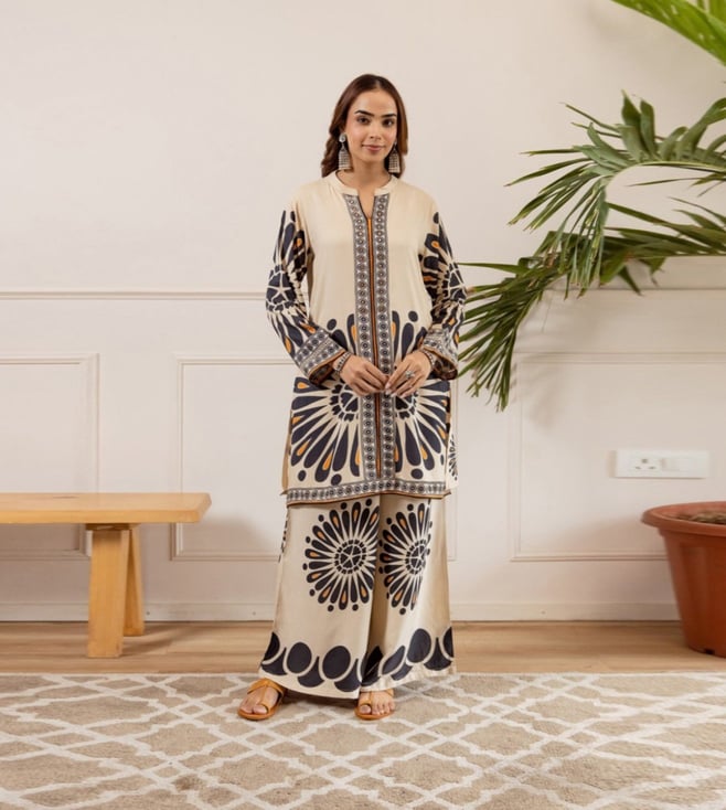 Autumnlane Off White Sonpal Frost Printed Relaxed Fit Co-Ord Set