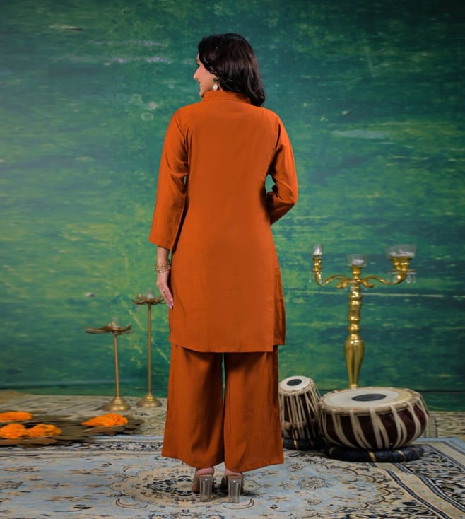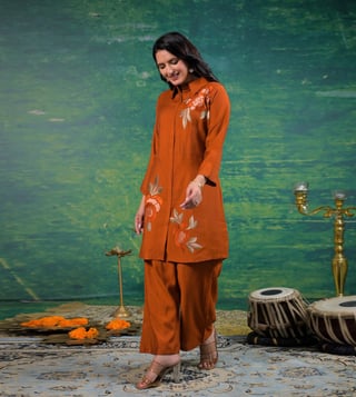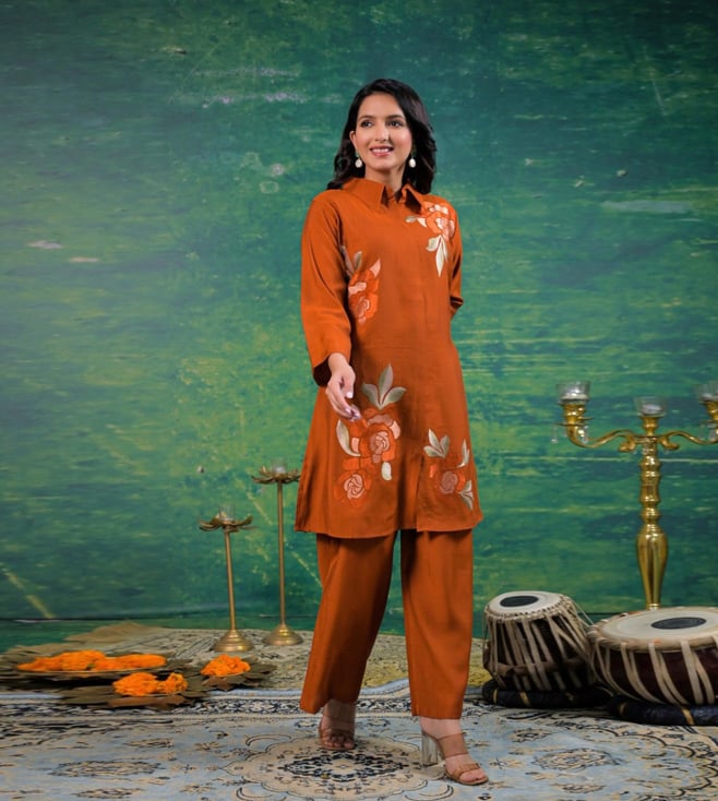 Autumnlane Orange Shanti Apricot Embroidered Regular Fit Co-Ord Set