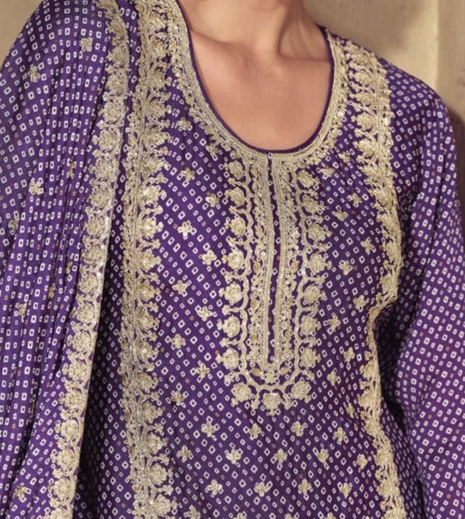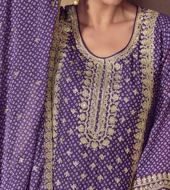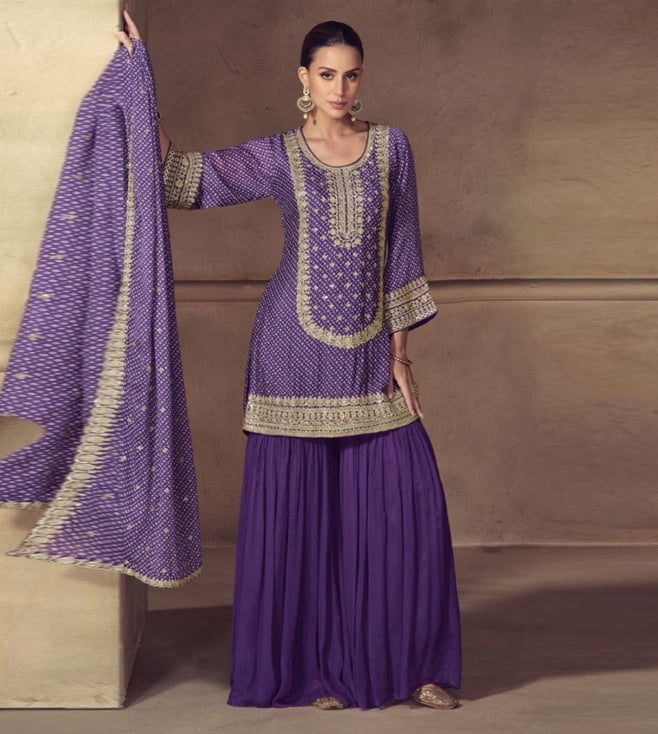 Autumnlane Orchid Purple Nimrat Embroidered Regular Fit Sharara Suit Set