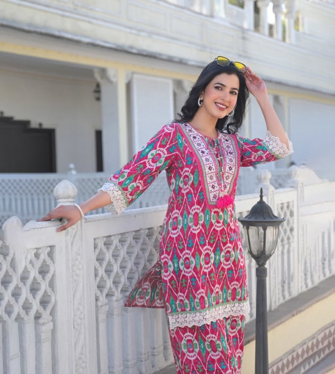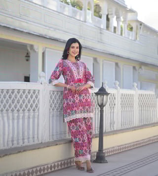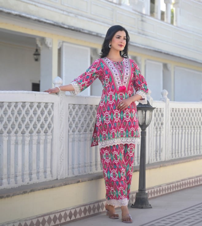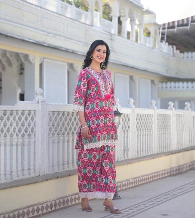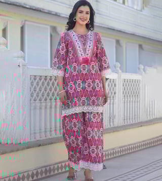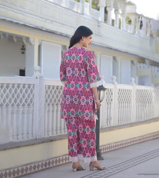 Autumnlane Pink Aranya Lapis Ikat Printed Comfort Fit Co-ord Set