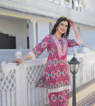 Embrace effortless style and comfort with the Autumnlane Pink Aranya Lapis Comfort Fit Printed Co-ord Set. Featuring a charming pink color, this set adds a soft yet vibrant touch to your wardrobe. The printed pattern introduces a fresh and playful vibe, making it perfect for casual outings, brunches, or day-to-day wear. The comfort fit design of the top ensures a relaxed, flattering silhouette that allows for easy movement while keeping you stylish.
