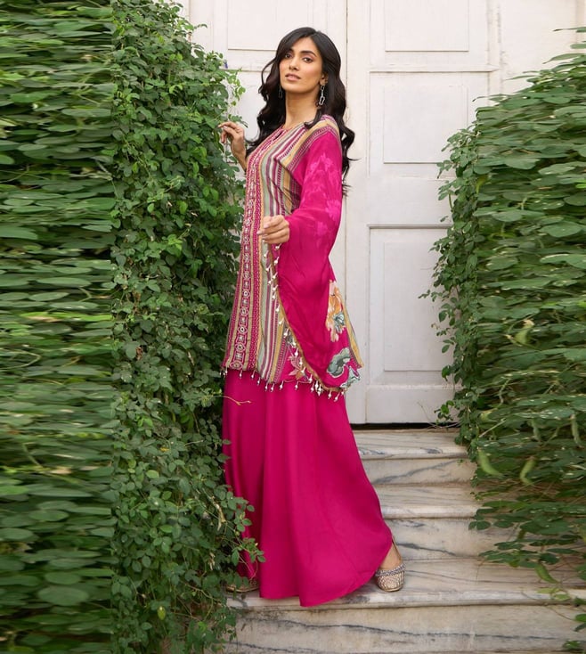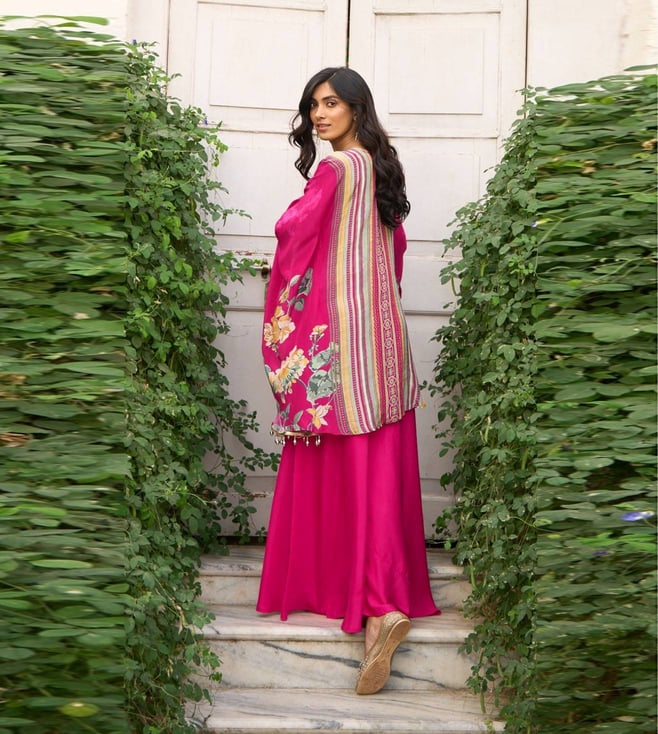 Elevate your wardrobe with the Autumnlane Pink Aster Rose Printed Relaxed Fit Co-ord Set. Made from natural crape, this stylish set features a beautiful floral print that exudes elegance and femininity. The relaxed fit ensures comfort while still maintaining a chic silhouette. Whether you aree heading to brunch with friends or a special event, this co-ord set is the perfect choice for those who want to stand out in style. Add a touch of sophistication to your look with this must-have ensemble.