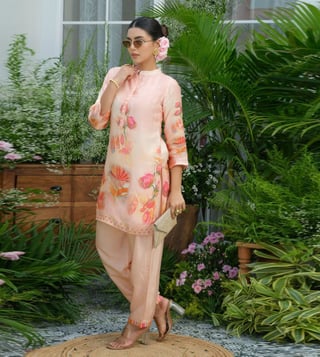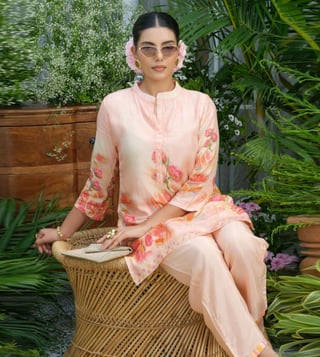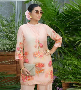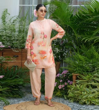 Elevate your style with our Autumnlane Pink Palash salmon Floral Relaxed Fit Co-Ord Set. This stunning ensemble features a delicate pink palash salmon floral print that exudes elegance and charm. The relaxed fit ensures all-day comfort, while the coordinating top and bottom make getting dressed a breeze. Perfect for a casual day out or a special occasion, this set is versatile and effortlessly chic. Embrace the beauty of autumn with this must-have outfit that will have you turning heads wherever you go.
