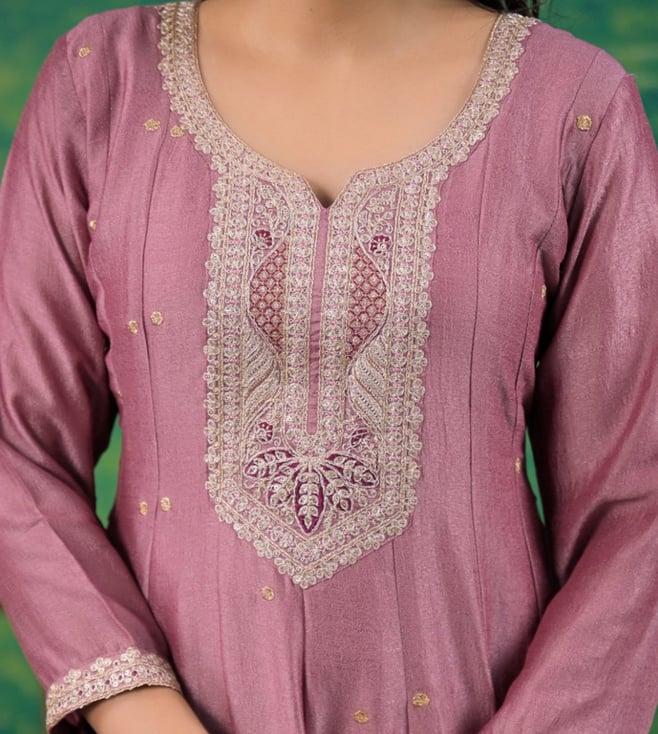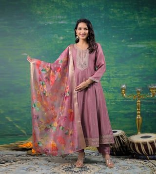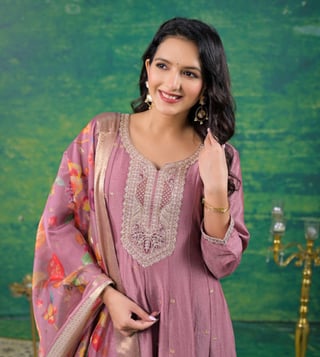 Elevate your everyday style with our Autumnlane Pink Shanti Salmon Embroidered Regular Fit Suit Set. Made from luxurious Mul Chanderi fabric, this set features intricate embroidery and a flattering sweetheart neckline. The long sleeves add a touch of elegance, making it perfect for daily wear. Stay comfortable and chic all day long in this versatile and stylish suit set that is sure to turn heads wherever you go. Upgrade your wardrobe with this must-have piece that effortlessly combines fashion and comfort.