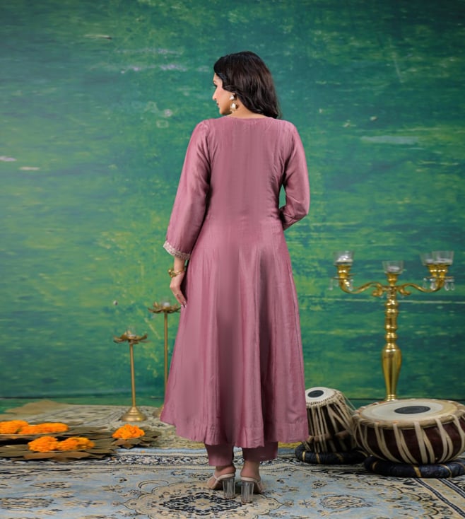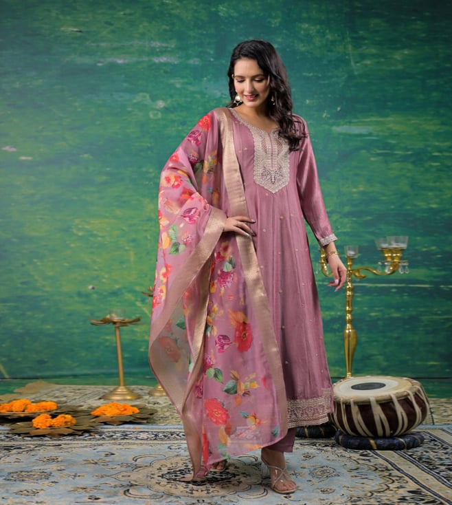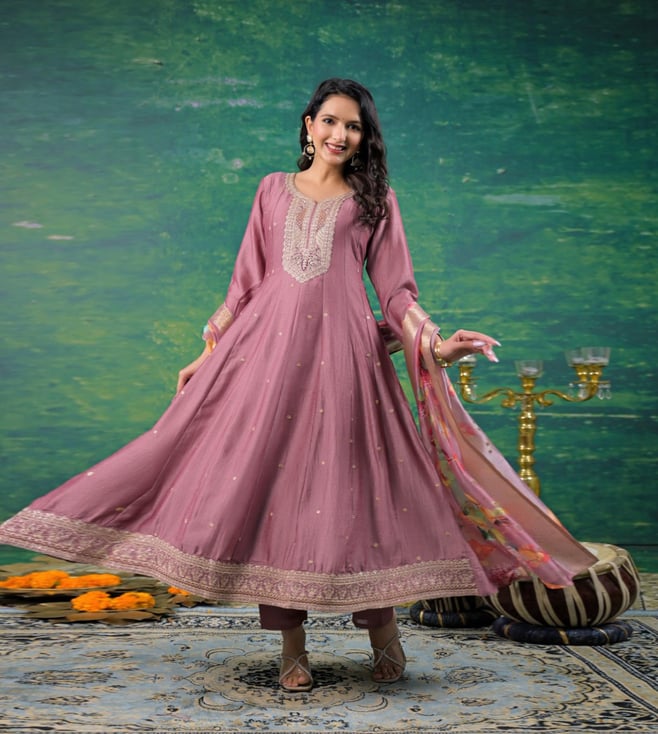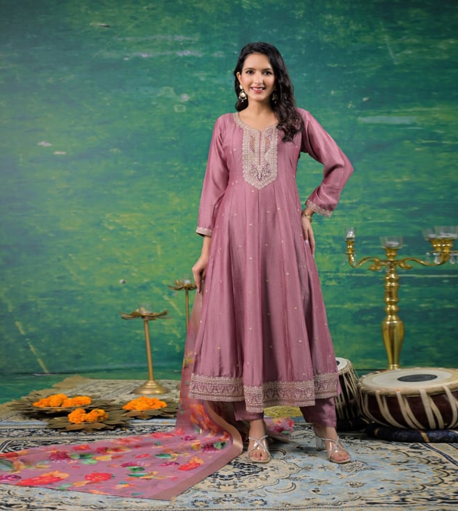 Autumnlane Pink Shanti Salmon Embroidered Regular Fit Suit Set