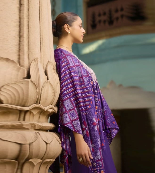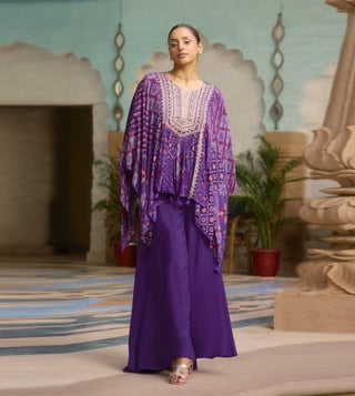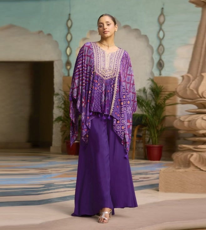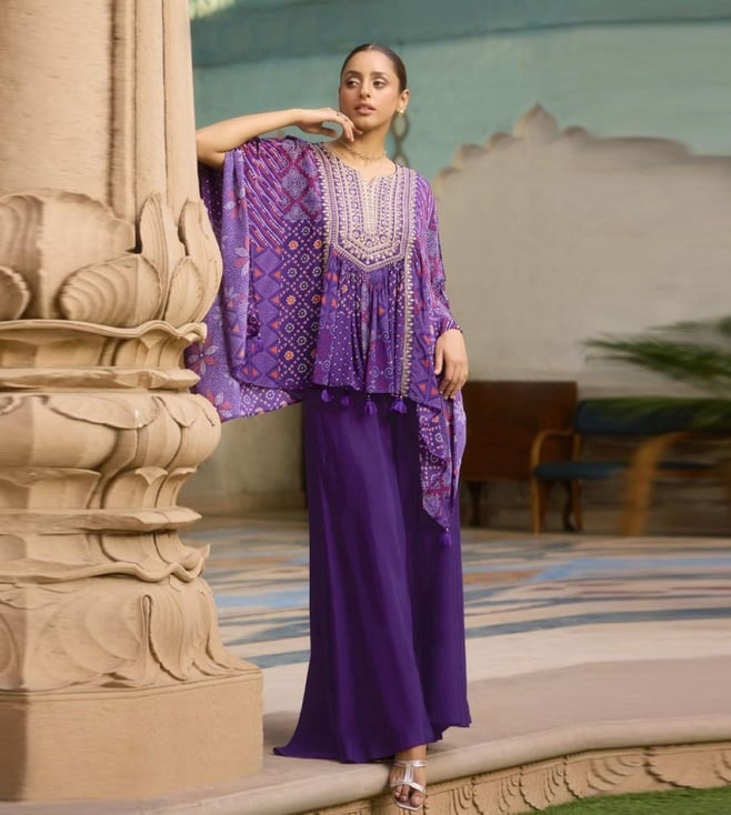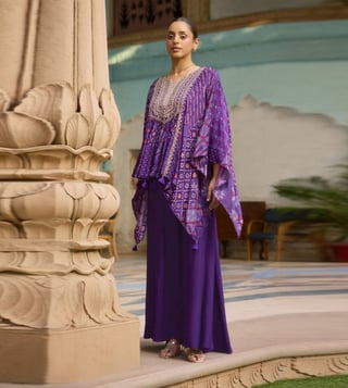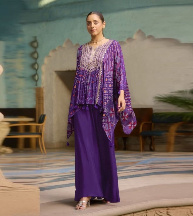 Autumnlane Purple Aster Embroidered Relaxed Fit Kaftan Pant Set