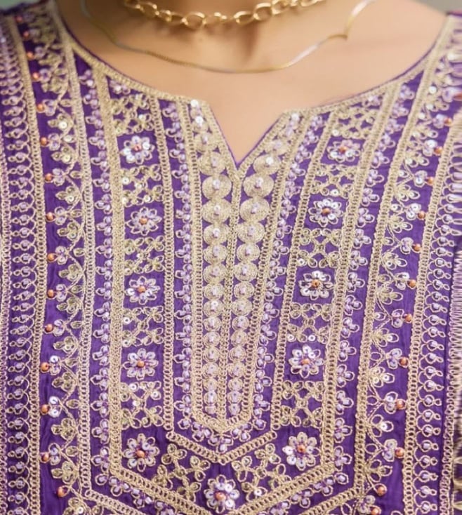 Elevate your loungewear game with our Autumnlane Purple Aster imperial Embroidered Relaxed Fit Kaftan Pant Set. This luxurious set features intricate embroidery and a relaxed fit for ultimate comfort and style. Perfect for relaxing at home or stepping out in style, this kaftan pant set is designed to make you feel effortlessly chic and comfortable. Embrace the beauty of autumn with this stunning ensemble that will surely turn heads wherever you go. Upgrade your wardrobe with this versatile and trendy set today