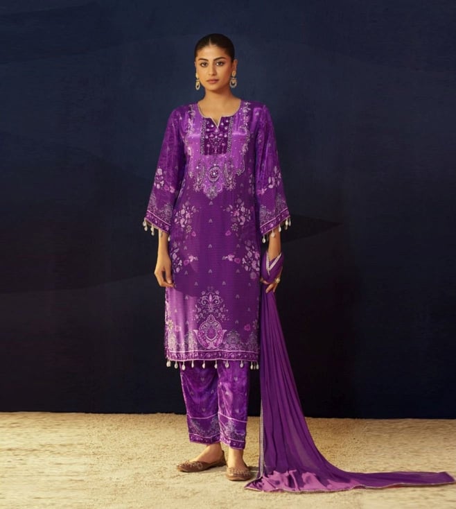 Autumnlane Purple Aster Printed Relaxed Fit Suit Set