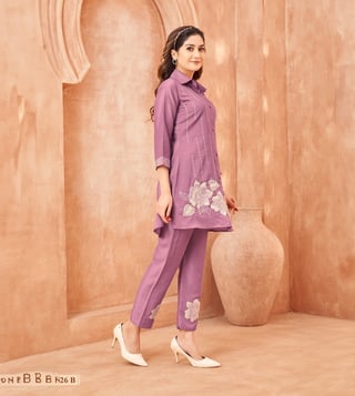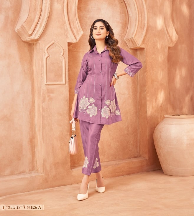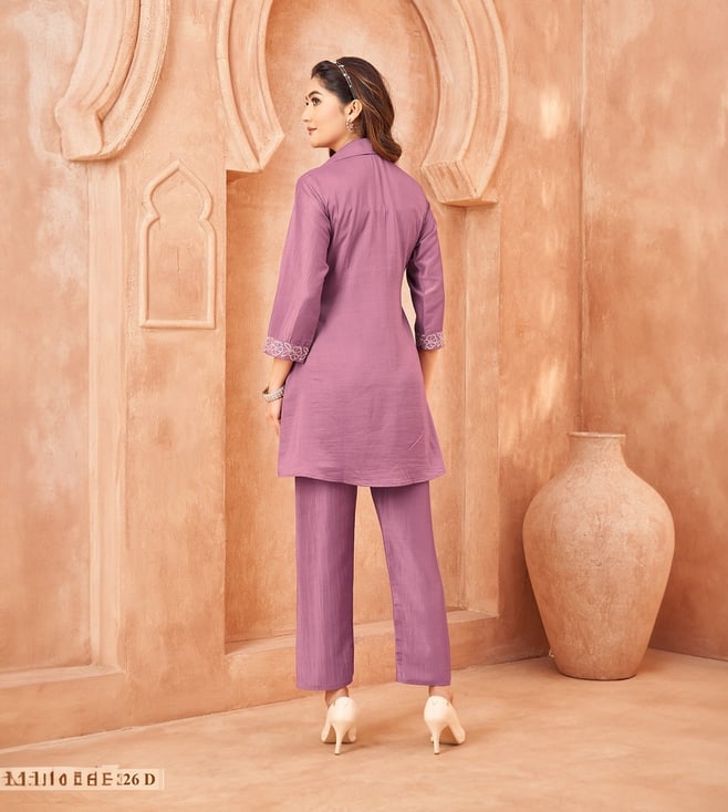 Autumnlane Purple Embroidered Kurta Bottom Set