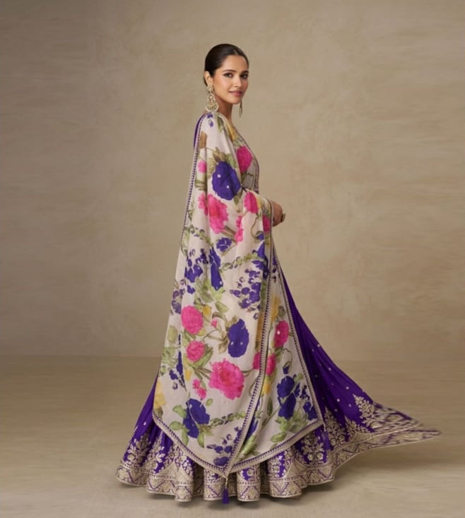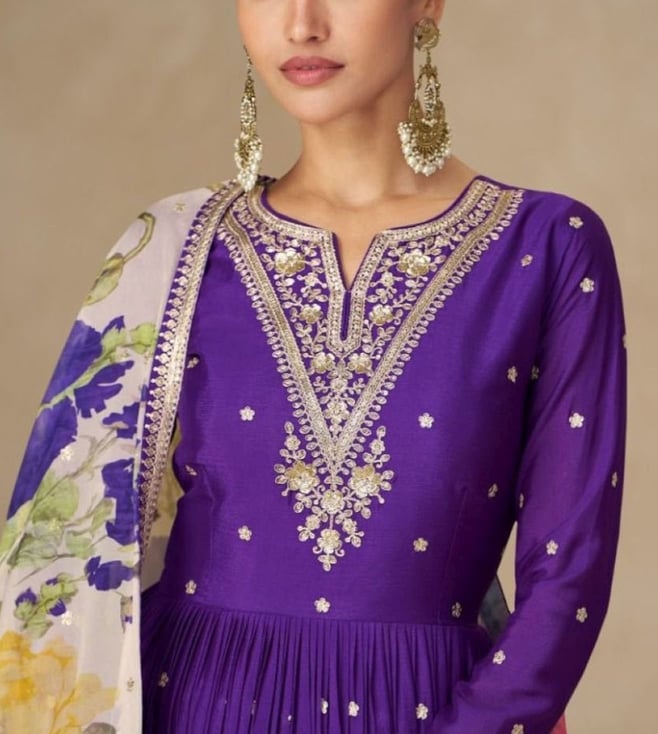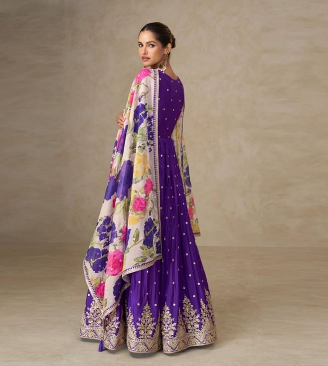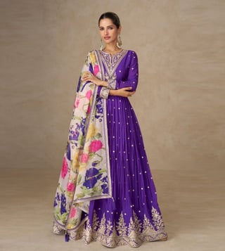 Autumnlane Purple Mangal Embroidered Flared Fit Anarkali Set