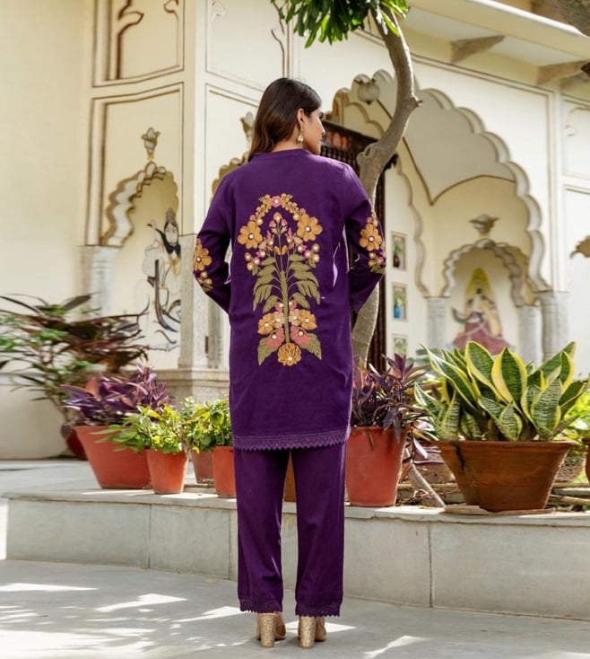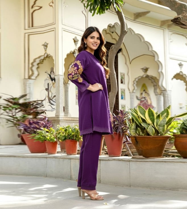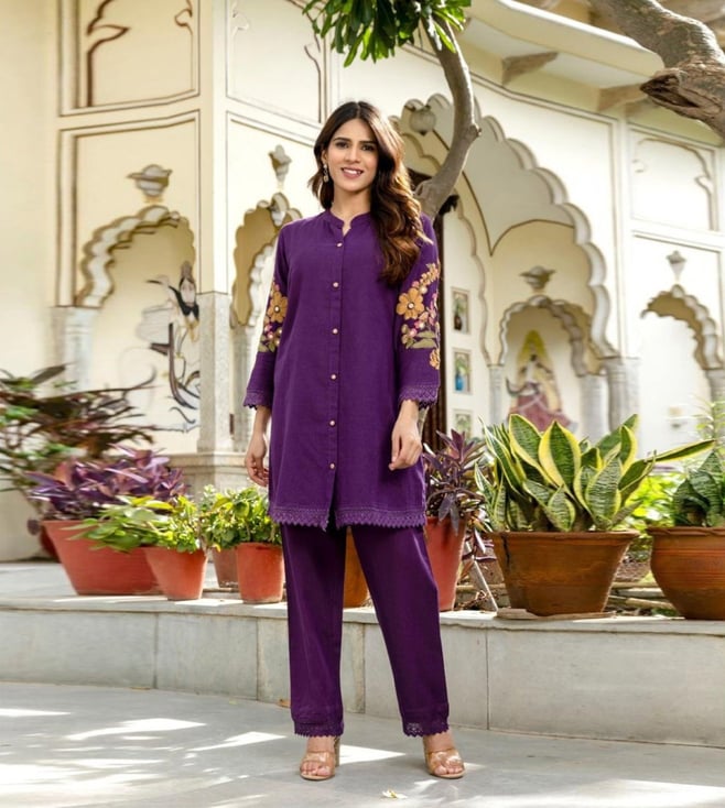 Autumnlane Purple Omra Orchid Embroidered Regular Fit Co-Ord Set
