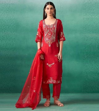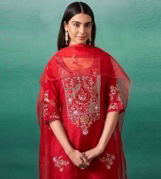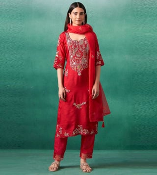 Elevate your fall wardrobe with our Autumnlane Red Iravermillion Embroidered Relaxed Fit Suit Set. This stunning ensemble features intricate embroidery and a relaxed fit, providing both style and comfort. Perfect for work meetings or special occasions, this suit set exudes sophistication and elegance. Stand out in a sea of ordinary with this one-of-a-kind piece that will surely turn heads. Upgrade your style game with the Autumnlane Red Iravermillion Embroidered Relaxed Fit Suit Set.