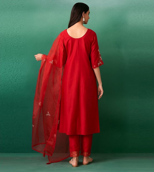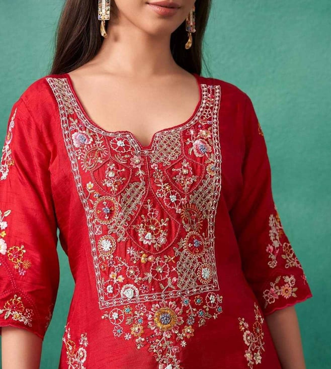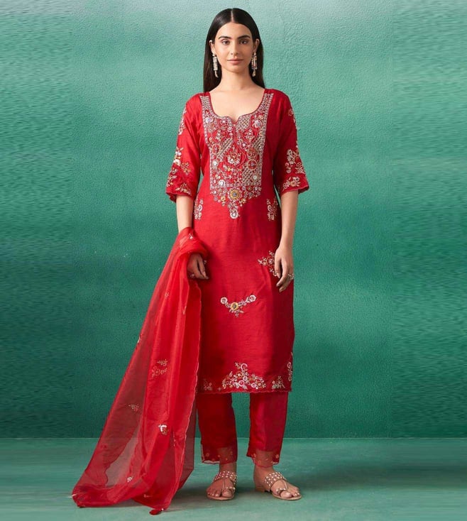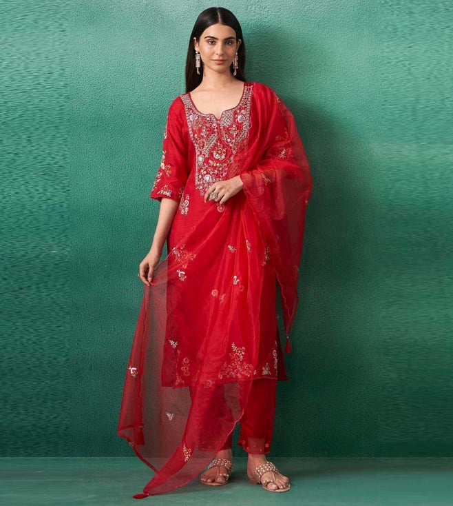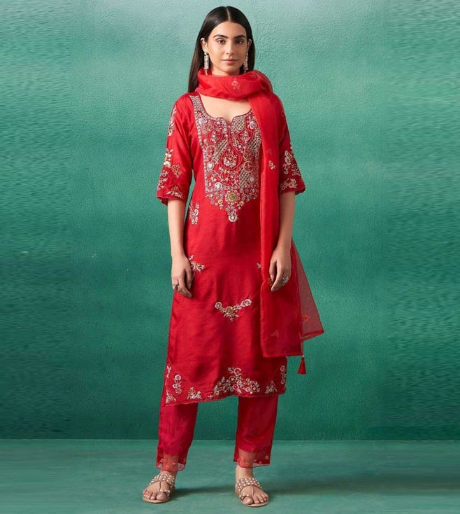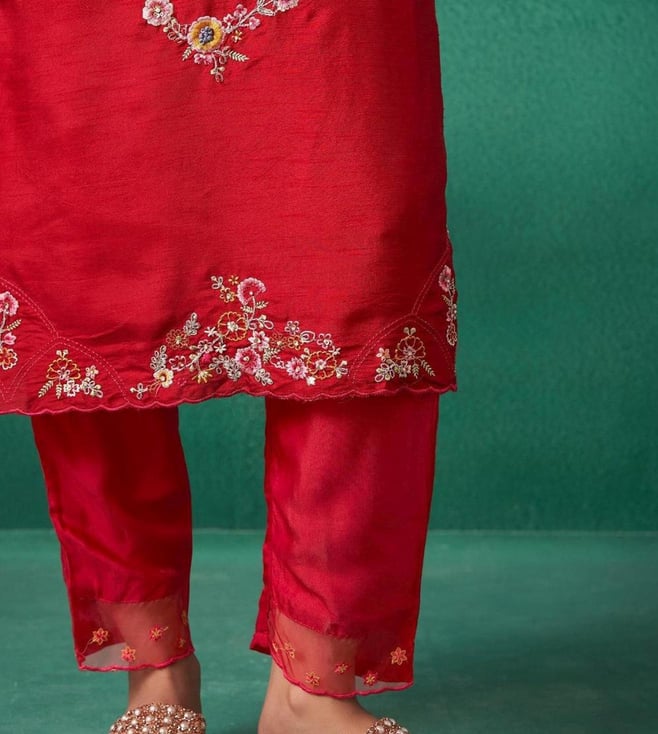 Autumnlane Red Iravermillion Embroidered Relaxed Fit Suit Set