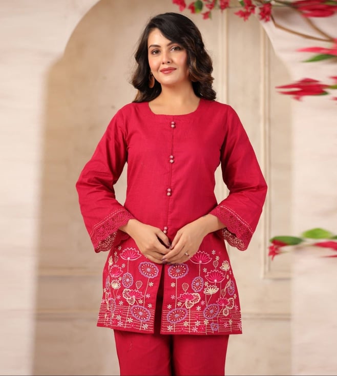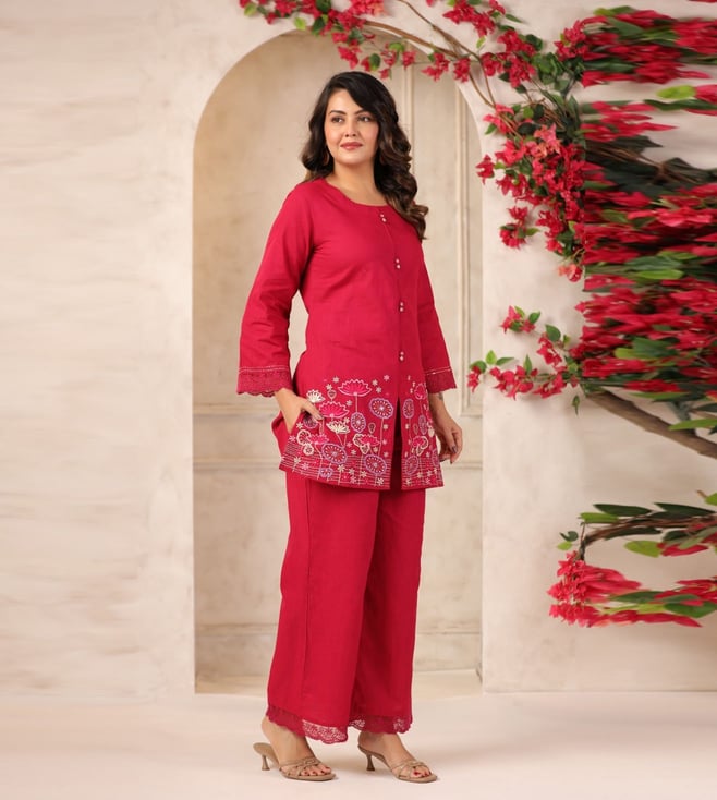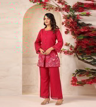 Autumnlane Red Mahua Carmine Relaxed Fit Co-ord Set