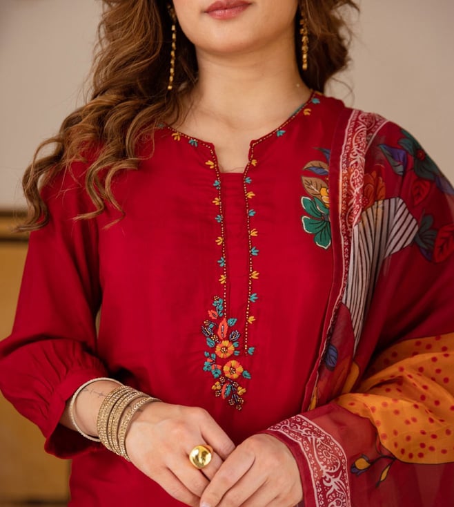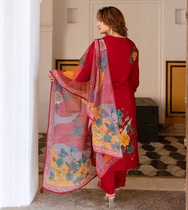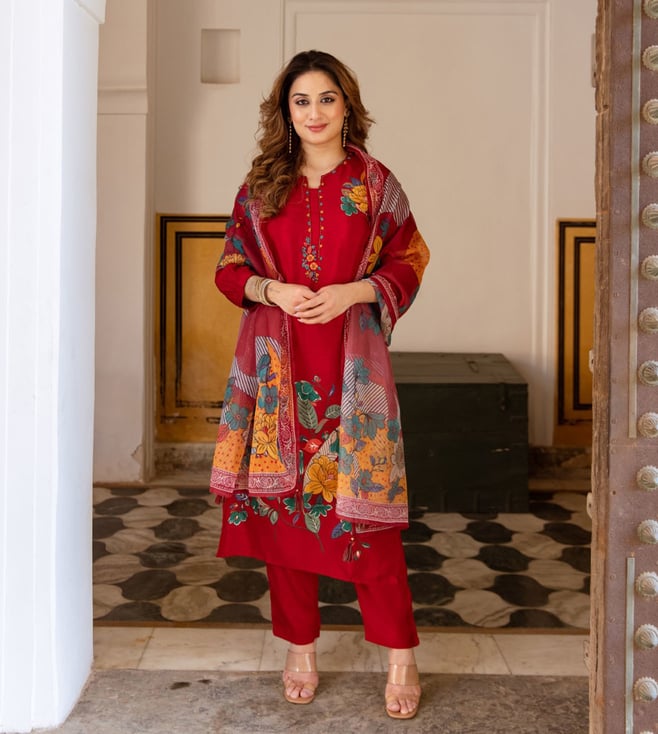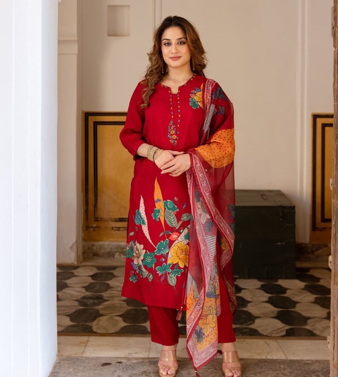 Autumnlane Red Viscose Comfort Fit Digital Printed Kurta Set