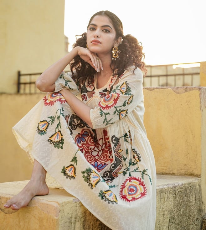 Keep your look simple yet stylish by wearing this dress. Tailored to sartorial perfection from cotton, it assures a soft and soothing touch against the skin. Disclaimer: Product colour may slightly vary due to photographic lighting sources. Country of Origin - India.