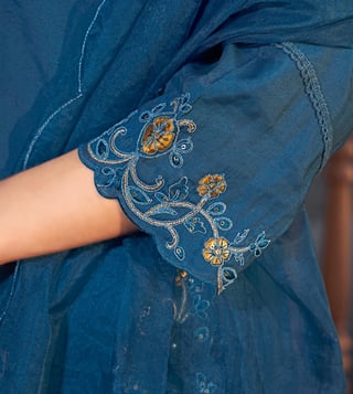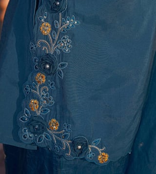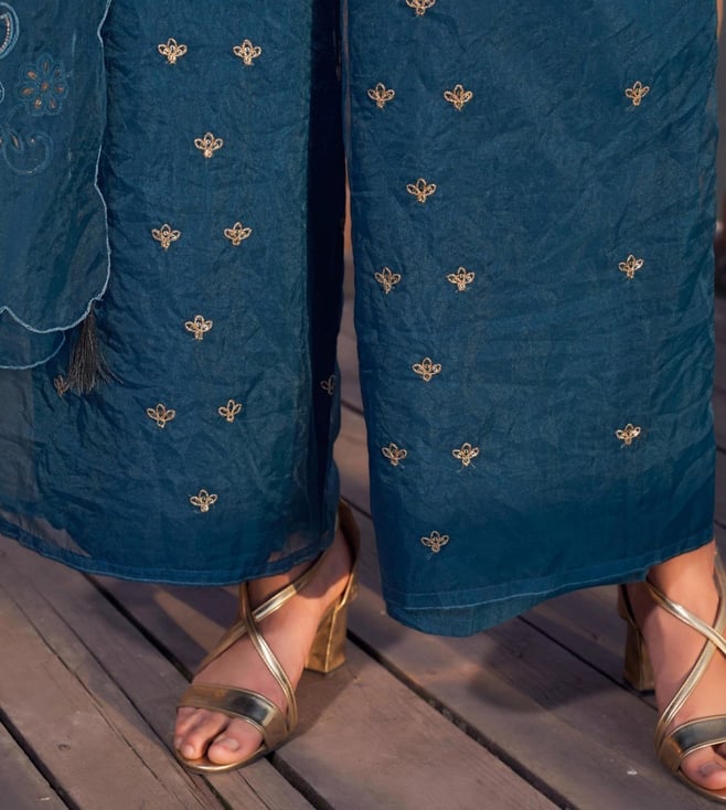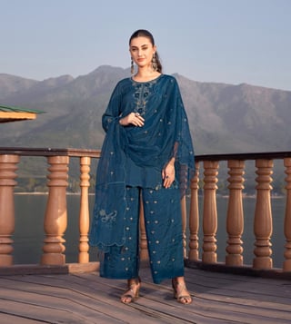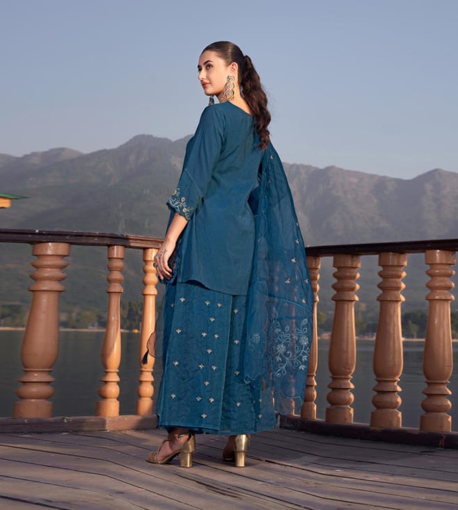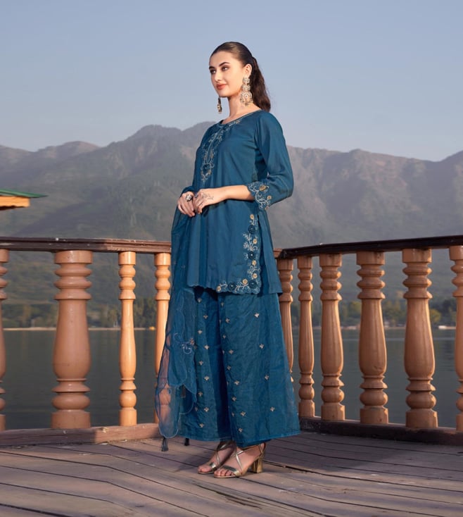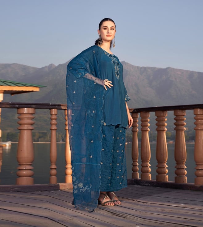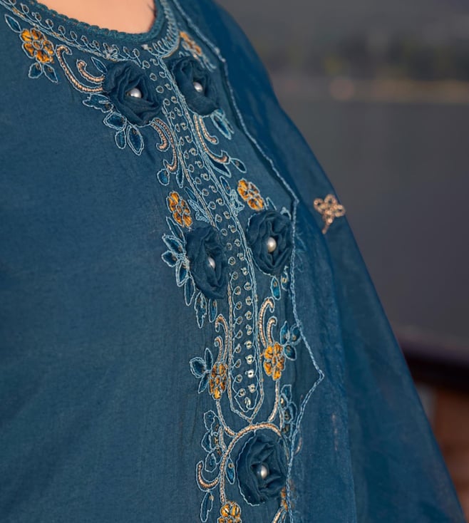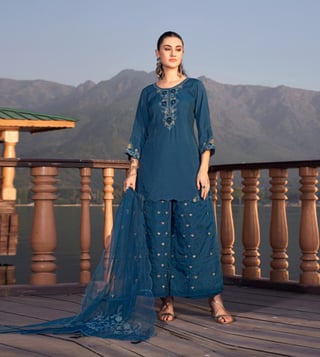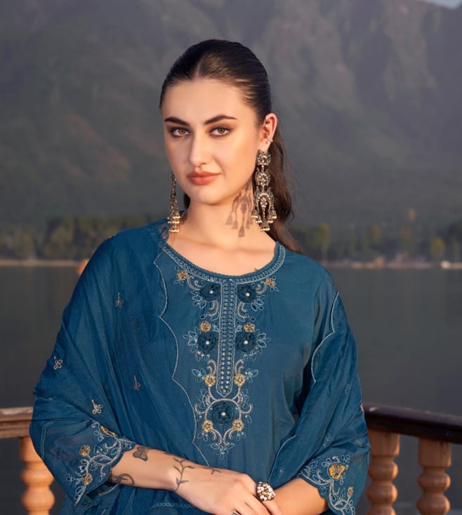 Autumnlane Teal Blue Nisha Casal Embroidered Regular Fit Suit Set