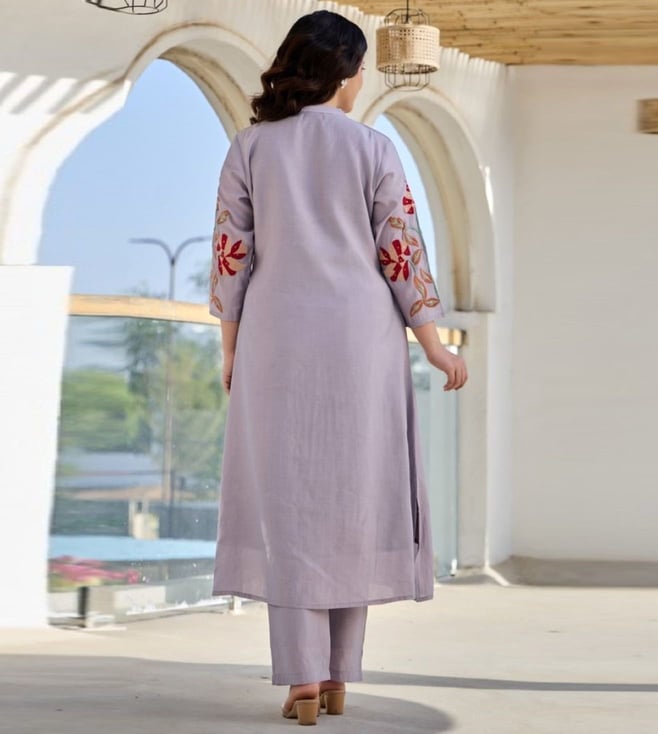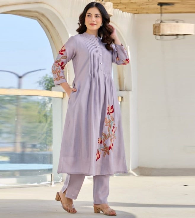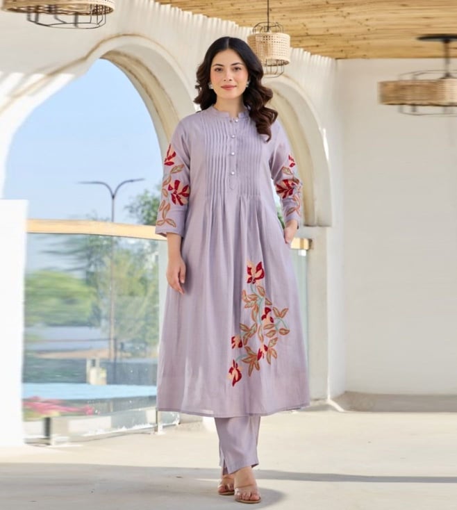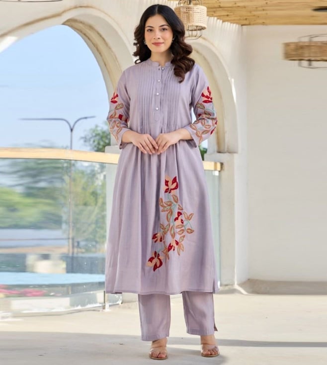 Thistle Purple Tiara Embroidered Regular Fit Kurta Pant Set