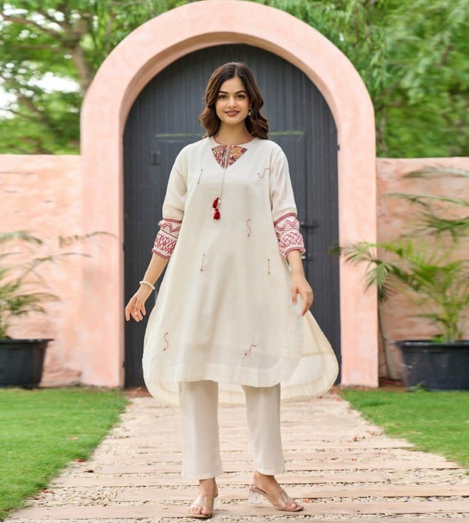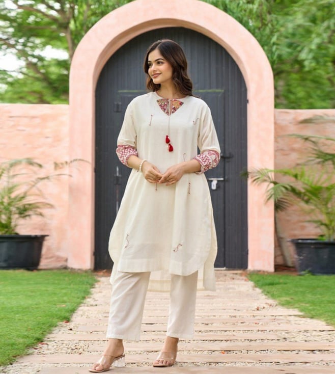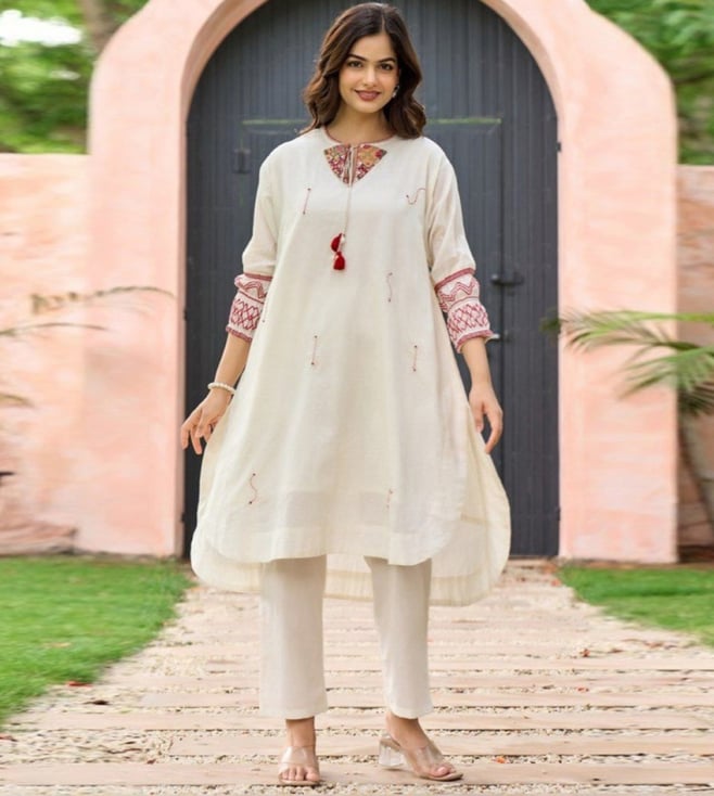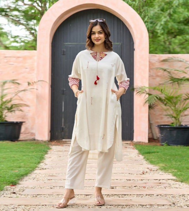 Autumnlane White Akira Frost Embroidered Relaxed Fit Co-Ord Set