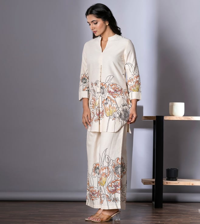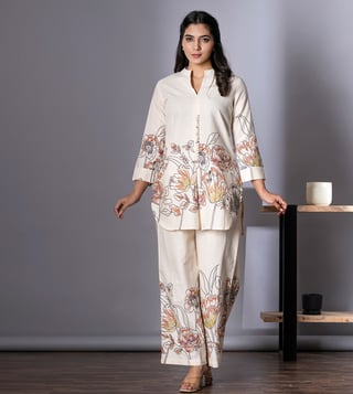 Autumnlane White Cotton Comfort Fit Floral Co-ord Set