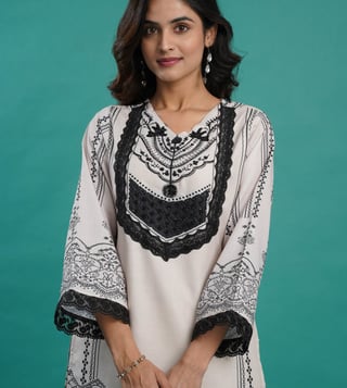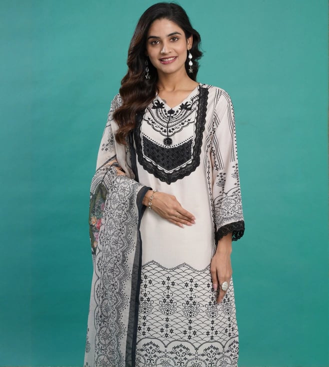 Autumnlane White Embroidered Comfort Fit Suit Set