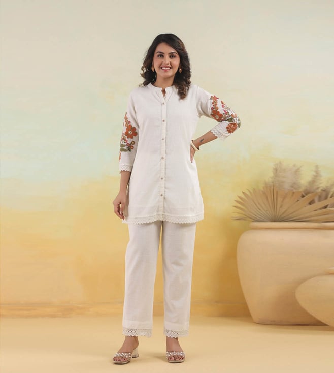 Autumnlane White Hopipola Pearl Embroidery Regular Fit Co-Ord Set