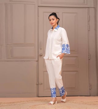 Elevate your wardrobe with the Autumnlane white jayti misri floral comfortable fit co-ord set. This stunning ensemble features a delicate floral design that exudes elegance and charm. The comfortable fit ensures all-day wearability, while the coordinating top and bottom make it easy to put together a stylish outfit. Whether you are heading to brunch or a night out, this set will have you looking effortlessly chic. Embrace the beauty of the season in this must-have co-ord set.
