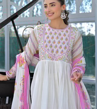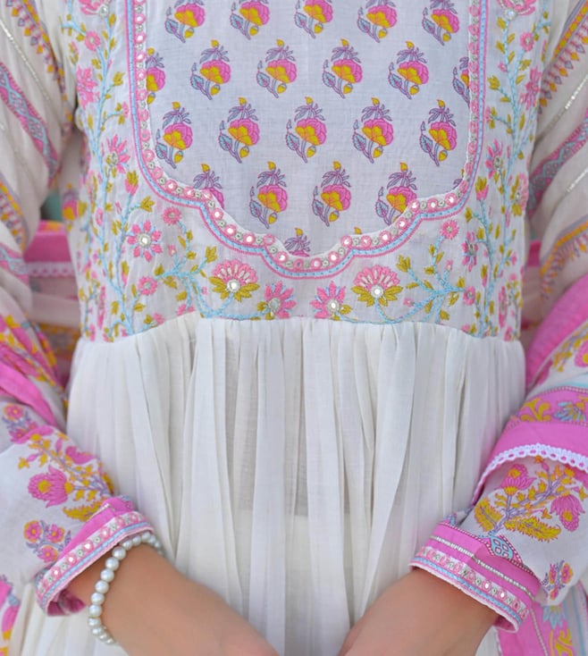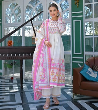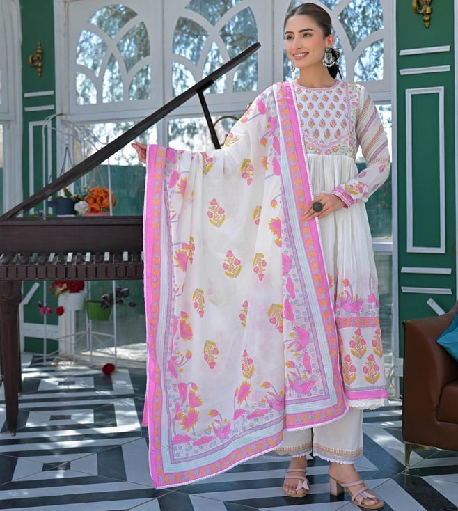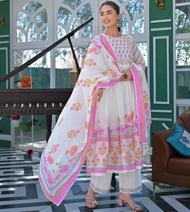 Autumnlane White Lakshita Punch Floral Comfort Fit Suit Set