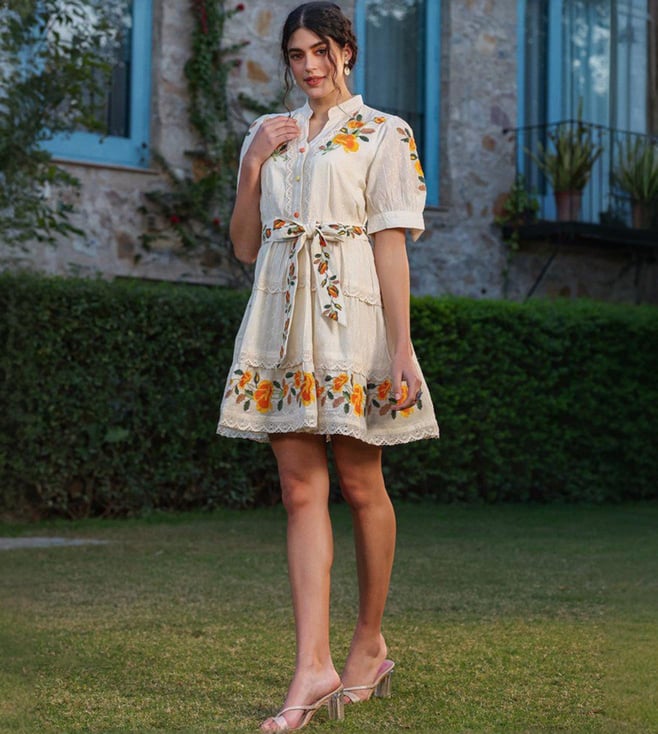 Autumnlane White Sam Pearl Marigold Cotton Dress