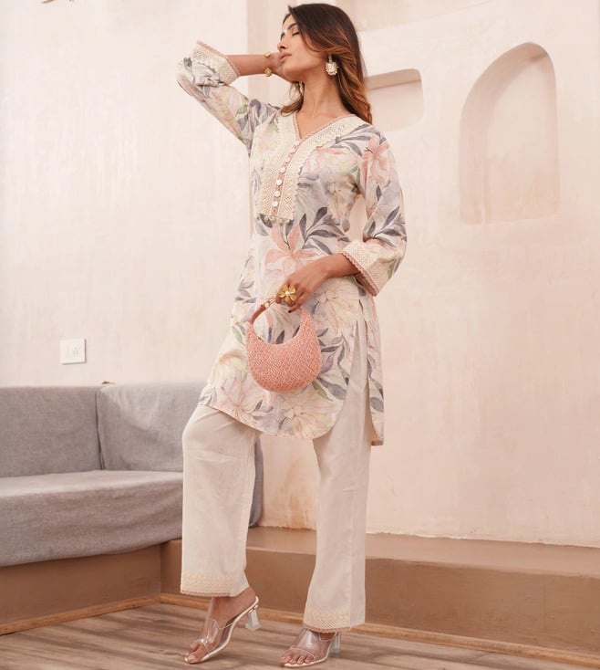 Autumnlane White Tashvika Heather Floral Comfort Fit Co-Ord Set