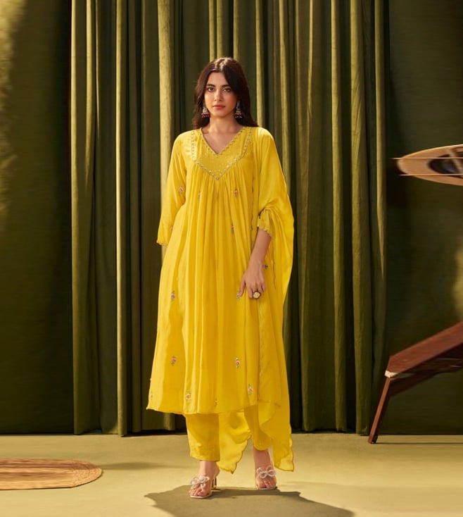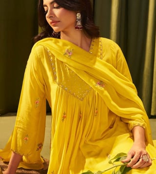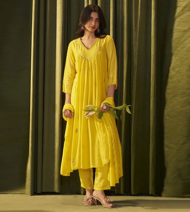 Introducing our Autumnlane Yellow Albelituscany Embroidered Relaxed Fit Suit Set, the perfect blend of style and comfort for any occasion. Made with high-quality fabric and intricate embroidery, this set exudes sophistication and elegance. The relaxed fit ensures all-day comfort, while the vibrant yellow color adds a pop of brightness to your wardrobe. Whether you are dressing up for a special event or looking to elevate your everyday style, this suit set is a must-have. Upgrade your wardrobe with the Autumnlane Yellow Albelituscany Embroidered Relaxed Fit Suit Set today