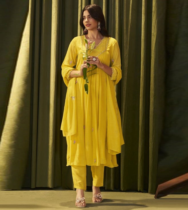 Autumnlane Yellow Albelituscany Embroidered Relaxed Fit Suit Set