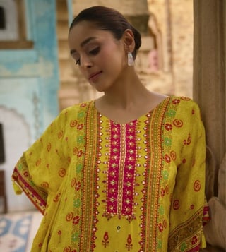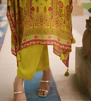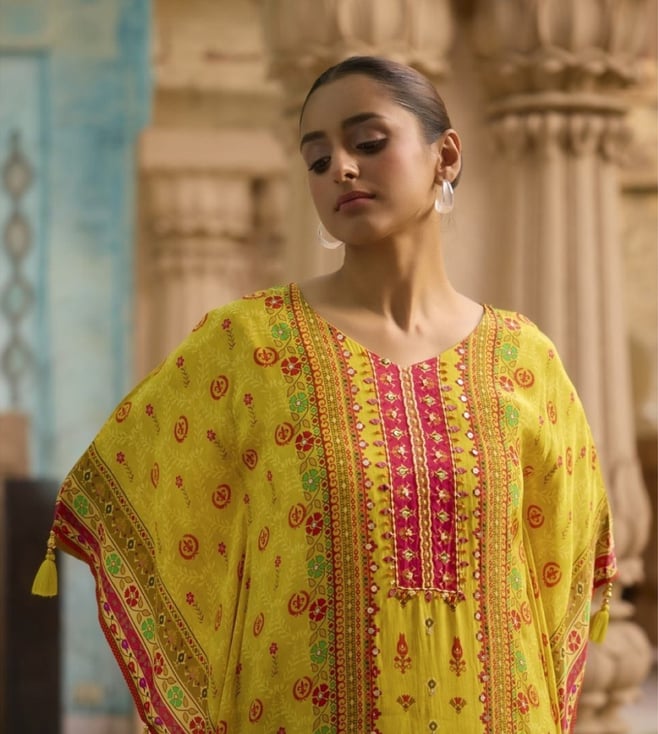 Elevate your wardrobe with Autumnlane Yellow Aster Pine Printed Relaxed Fit Kaftan Pant set. Embrace effortless style and comfort with this versatile set, featuring a relaxed fit kaftan top and matching pants, perfect for lounging at home or running errands in style. The vibrant yellow aster pine print adds a pop of color to your look, while the relaxed fit ensures all-day comfort. Made from high-quality materials, this set is a must-have addition to your fall collection. Upgrade your wardrobe with the Autumnlane Kaftan Pant set and stand out with ease.