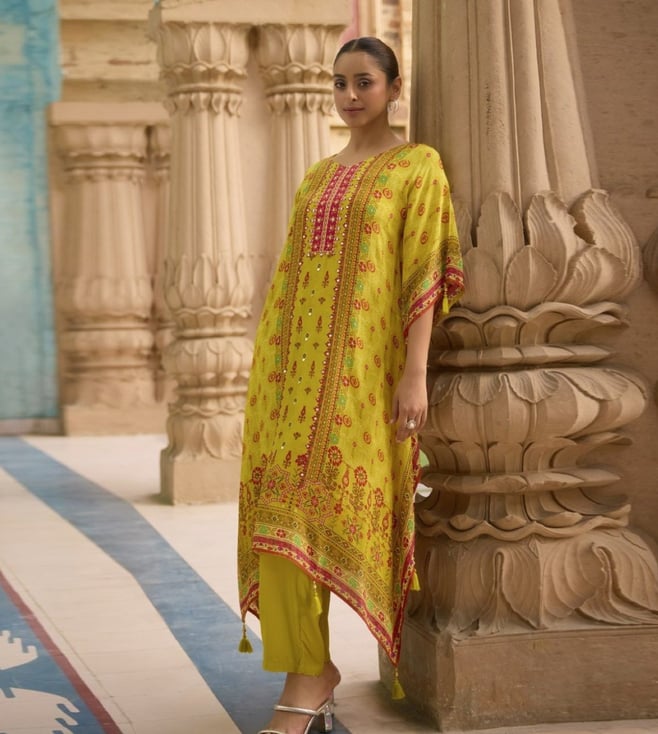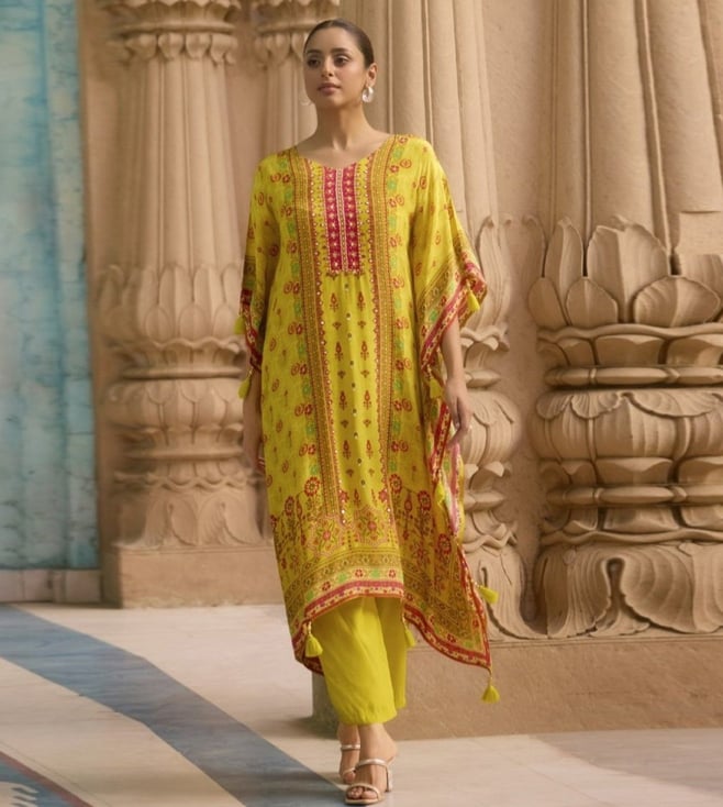 Autumnlane Yellow Aster Pine Printed Relaxed Fit Kaftan Pant Set