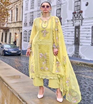 The Autumnlane yellow ayat comfort fit embroidered kurta with pant and dupatta is made from soft cotton, offering both comfort and style. Featuring a keyhole neck and intricate embroidery, this set exudes a festive charm. Perfect for special occasions, the breathable fabric ensures you stay comfortable, while the vibrant yellow hue adds a cheerful touch. Paired with a matching pant and dupatta, this set combines traditional elegance with modern flair, making it an ideal choice for festive celebrations.