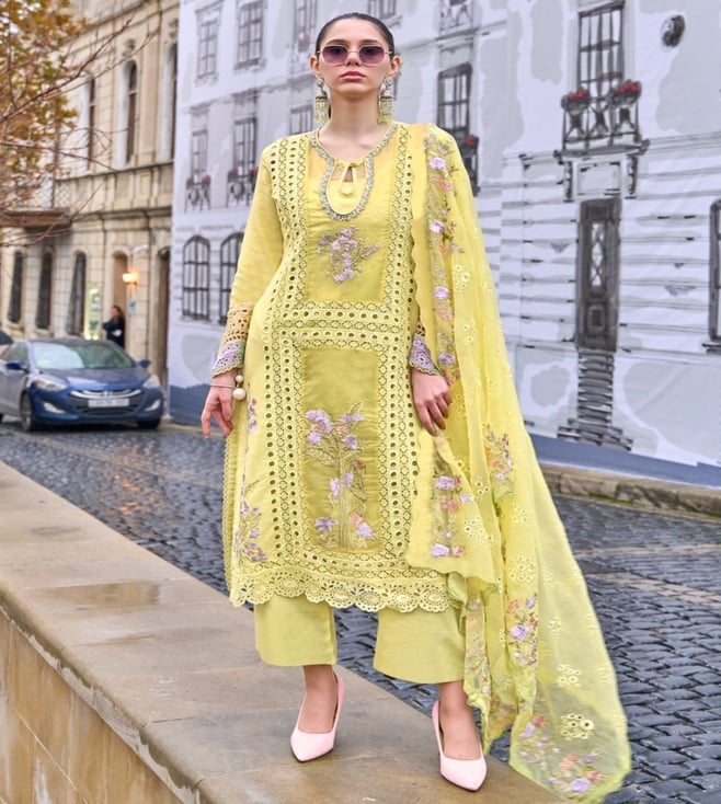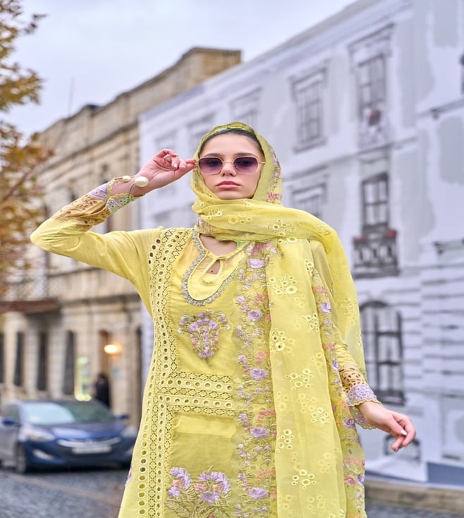 Autumnlane Yellow Ayat Embroidered Comfort Fit Pakistani Suit Set