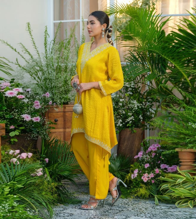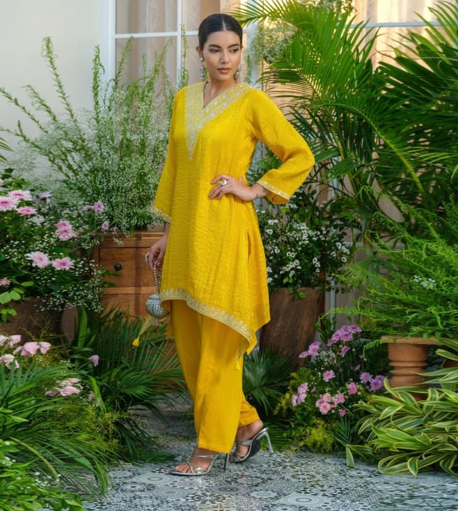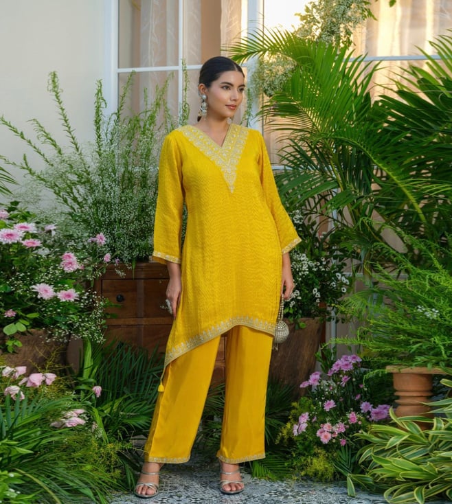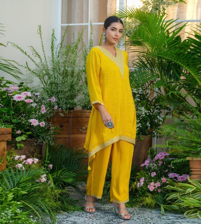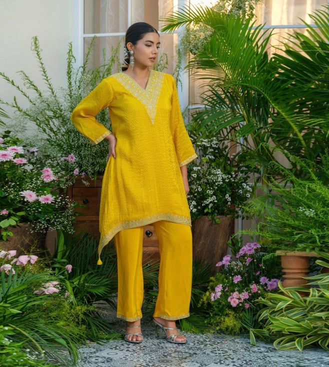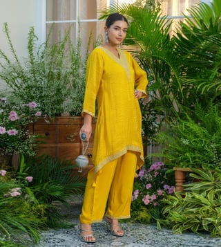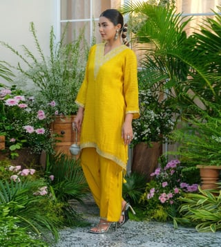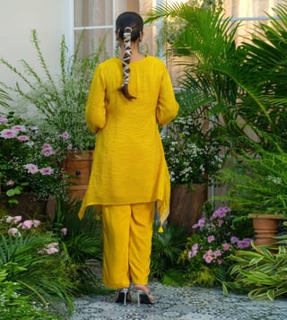 Autumnlane Yellow Palash Canary Textured Relaxed Fit Co-Ord Set