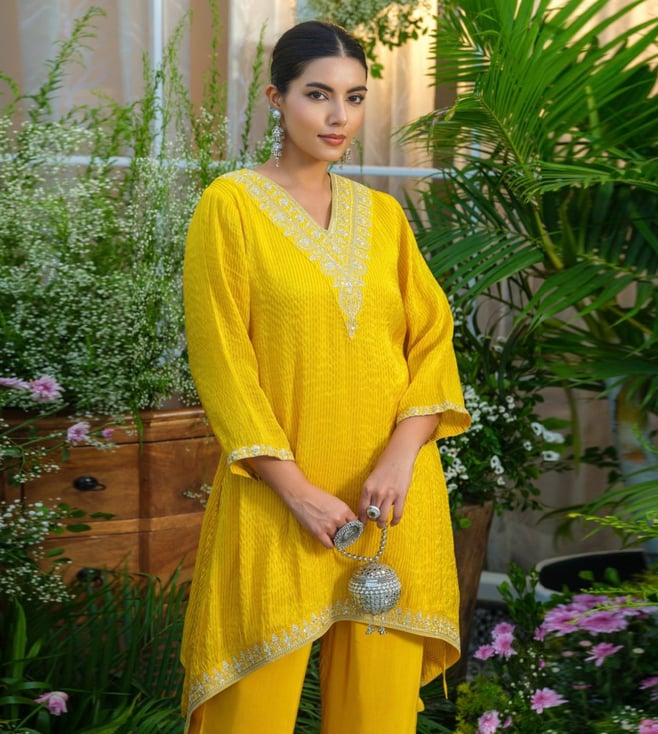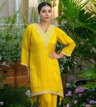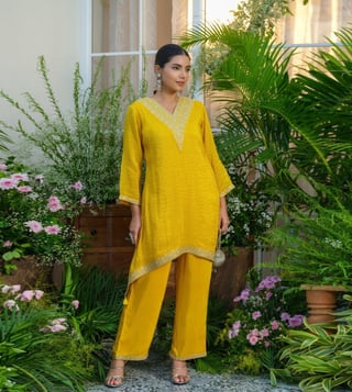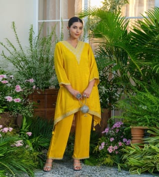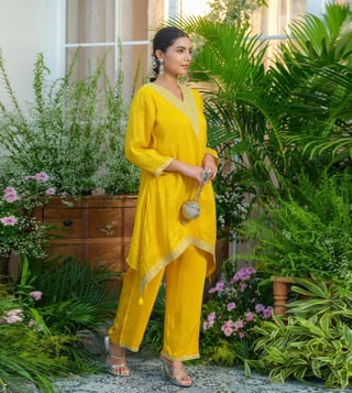 Elevate your style with Autumnlane Yellow Palash canary Textured Relaxed Fit Co-ord Set. This eye-catching set combines comfort and fashion effortlessly, featuring a relaxed fit and a unique textured design that will make you stand out in any crowd. Perfect for both casual and formal occasions, this co-ord set is versatile and easy to style. Embrace the vibrant yellow hue of the Palash canary color that screams confidence and sophistication. Make a statement with this must-have ensemble that is sure to turn heads wherever you go.