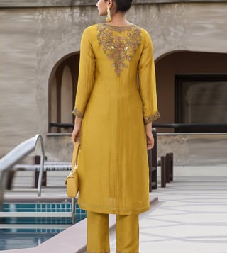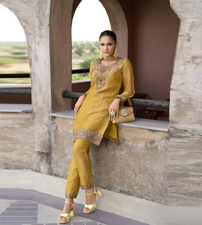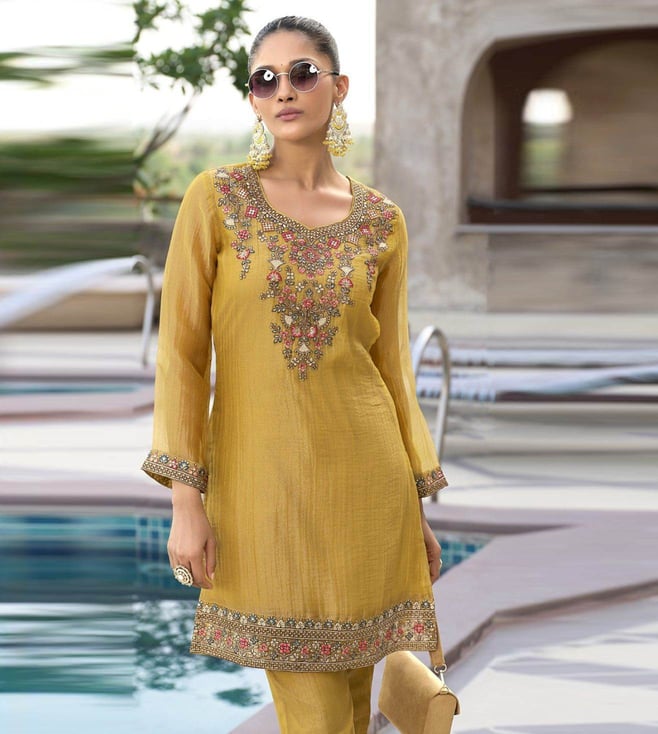 Elevate your autumn wardrobe with our Autumnlane Yellow Rajshreeamber Embroidered Relaxed Fit Co-Ord Set. This stunning ensemble features intricate embroidery and a relaxed fit design for ultimate comfort and style. Perfect for a day out in the city or a cozy night in, this set effortlessly combines fashion and functionality. Stand out in the crowd and make a statement with this eye-catching outfit. Upgrade your fall fashion game with our must-have Co-Ord Set.