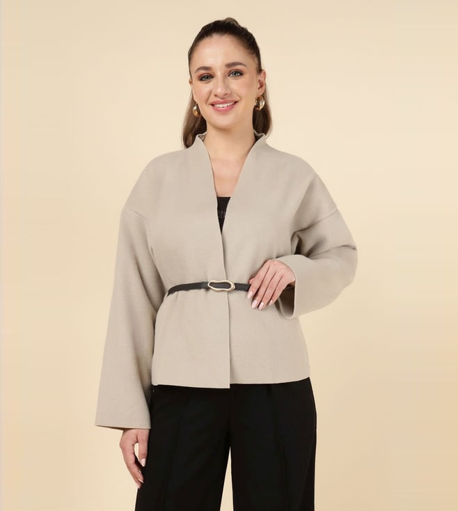 Brown Embellished Flared Fit Waistcoat with Belted Skirt Set