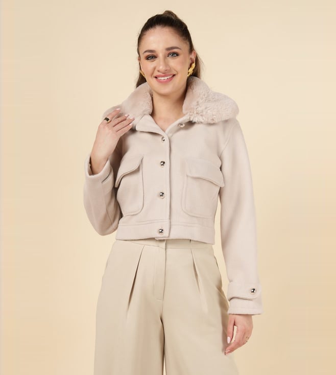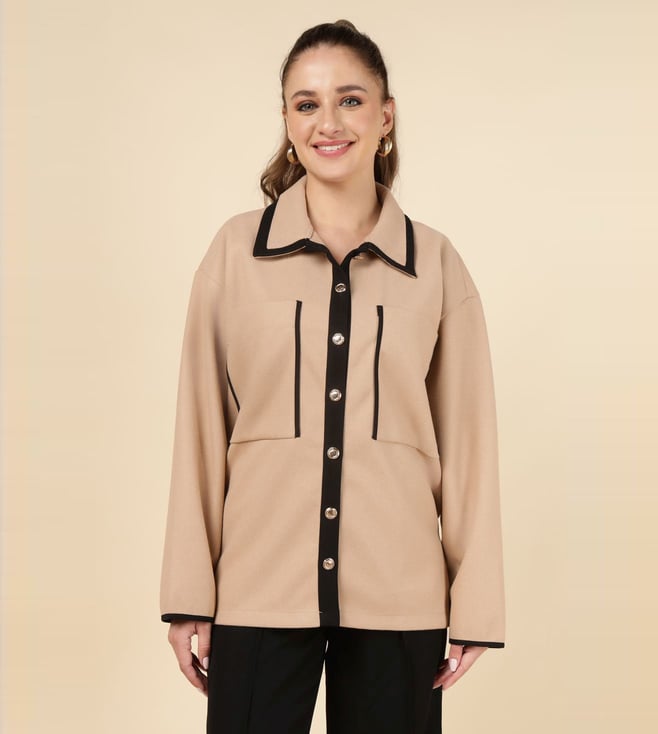 Beige 3D Mono Embroidered Regular Fit Shirt