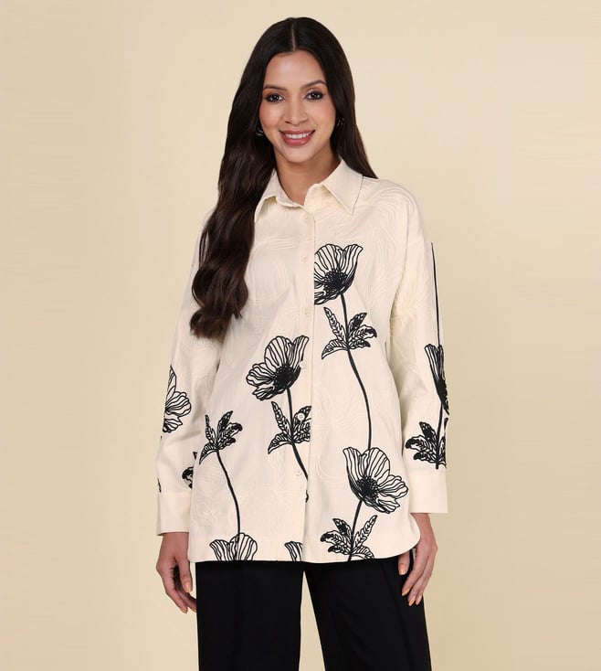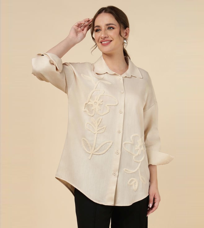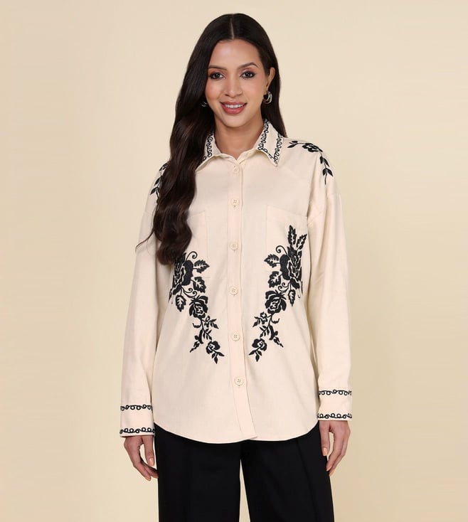 Ivory 3D Thread Embroidered Regular Fit Shirt