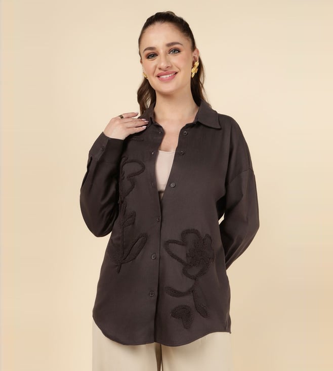 Chocolate Brown 3D Mono Embroidered Regular Fit Shirt