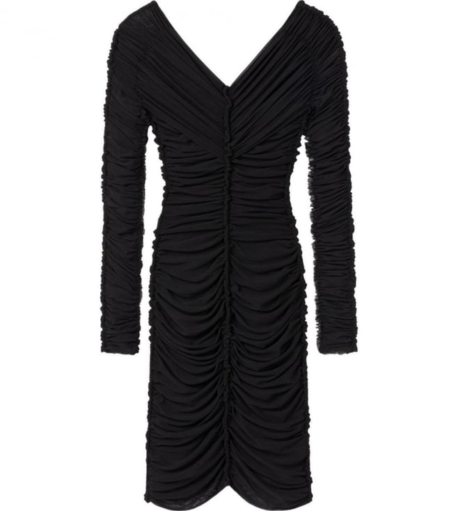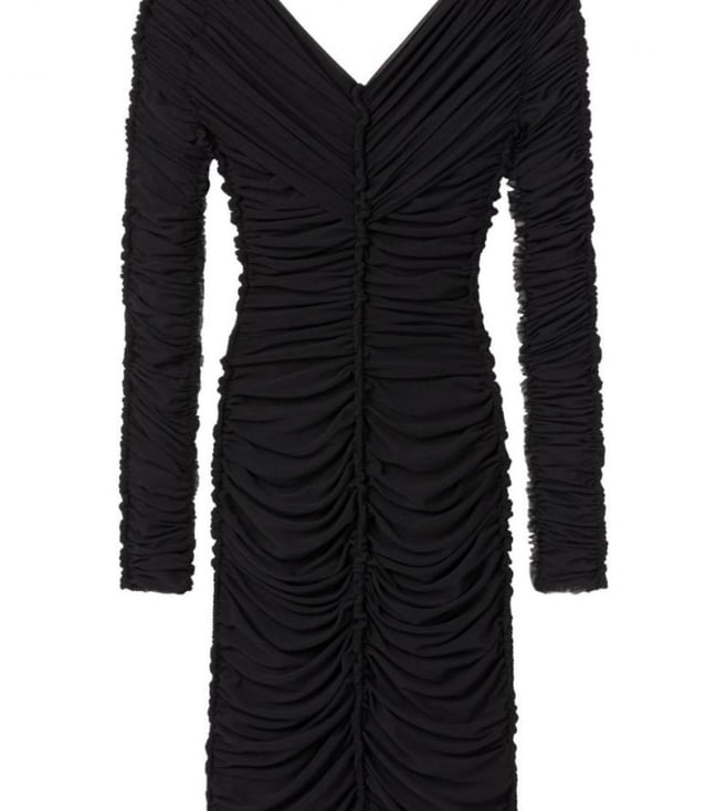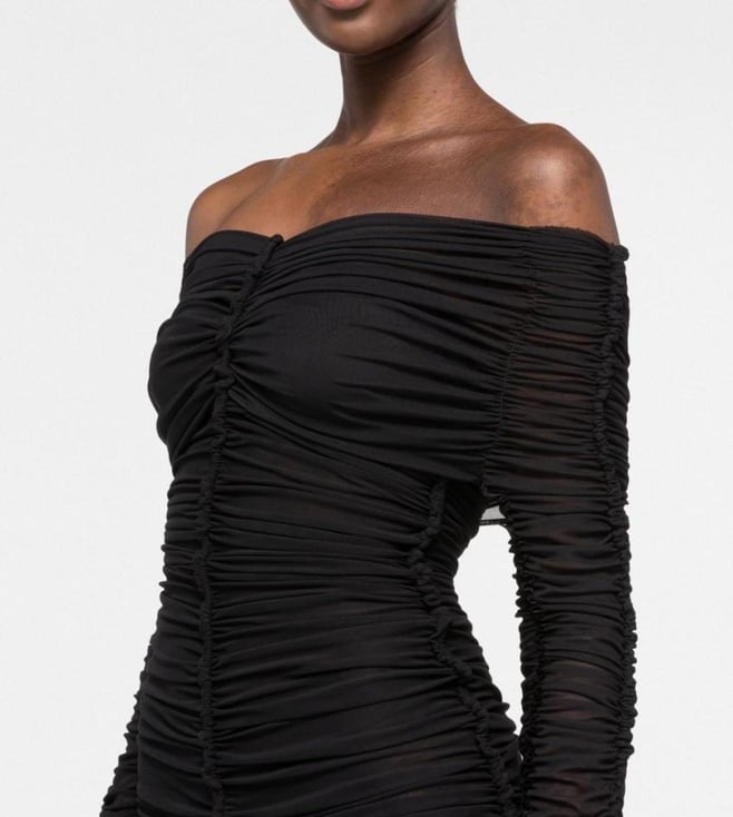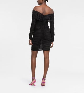 Unveil your inner elegance with this captivating black dress, a masterpiece of modern sophistication. Crafted from a luxurious blend of 95% polyester and 5% elastane, it offers a flawless fit that gracefully contours your silhouette. The solid black hue exudes timeless allure, while the off-shoulder design adds a touch of daring femininity. Long sleeves provide an elegant balance, making it perfect for any occasion. A discreet closure ensures seamless wear, embodying both style and comfort.