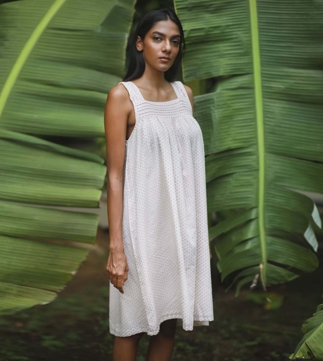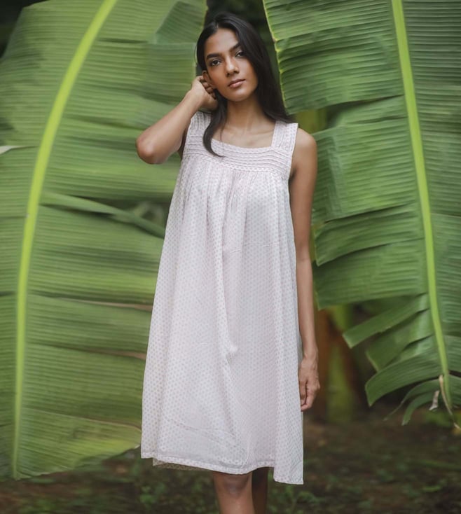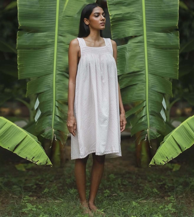 Mina's the girly girl. Modest, ultra feminine and soft, you'll want to take a twirl when you're wearing the dress. Perfect for a southern summer, it will be a delight. Tailored to sartorial perfection from cotton, it assures a soft and soothing touch against the skin. Country of Origin - India. Disclaimer: Product colour may slightly vary due to photographic lighting sources.