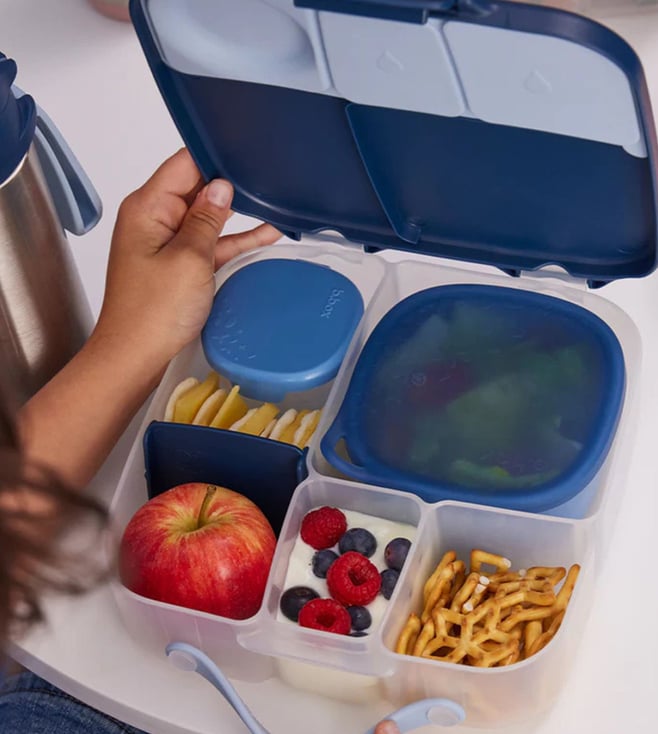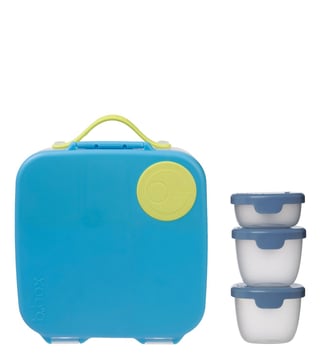 The b.box blue polypropylene lunchbox and 3 snack tubs set - your perfect on-the-go meal companion. This vibrant set of 4 containers offers ultimate convenience and organization for your lunch and snacks. The durable polypropylene construction ensures long-lasting use, while the leak-proof design keeps your food fresh and secure. With three snack tubs included, you can easily portion out your favorite treats. Say goodbye to messy lunches and hello to hassle-free meal prep with this stylish and practical set.