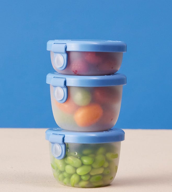 Blue Polypropylene Lunchbox & 3 Snack Tubs - Set of 4