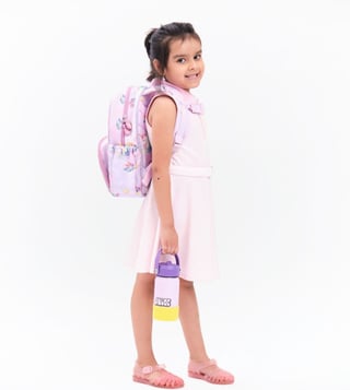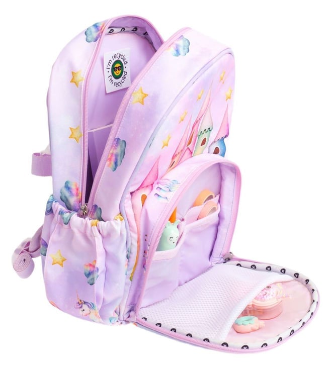 Adjustable, soft padded straps with secure buckle closure, waterproof and abrasion-resistant outer fabric crafted from recycled pet bottles for durability, spacious main compartment with divider to keep items organized and within reach, hidden pocket for airtag or cash - perfect for parents¿ peace of mind, front pocket with built-in pencil organizer for easy access to essentials, side pockets for bottles - convenient and accessible on the go, soft, tactile double-zip pullers designed for little hands to open and close independently.