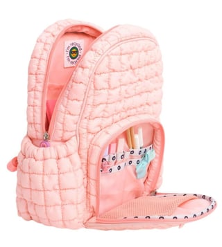 Adjustable, soft padded straps with secure buckle closure, waterproof and abrasion-resistant outer fabric crafted from recycled pet bottles for durability, spacious main compartment with divider to keep items organized and within reach, hidden pocket for airtag or cash - perfect for parents¿ peace of mind, front pocket with built-in pencil organizer for easy access to essentials, side pockets for bottles - convenient and accessible on the go, soft, tactile double-zip pullers designed for little hands to open and close independently.