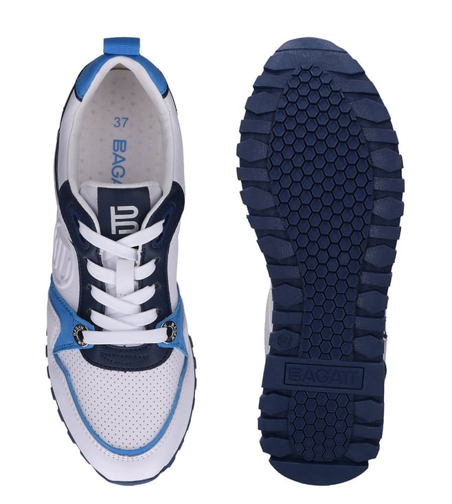 BAGATT Women's Siena Logo Synthetic White & Blue Sneakers